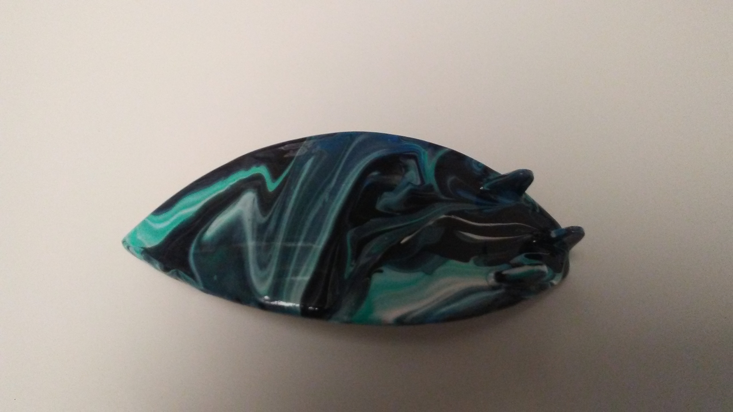 Surfboard Hair Barrette Hand Painted Black & Cyan
